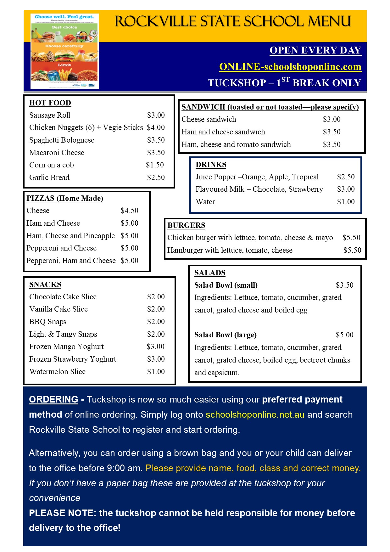 Please click on the following link to place your child's tuckshop order online.