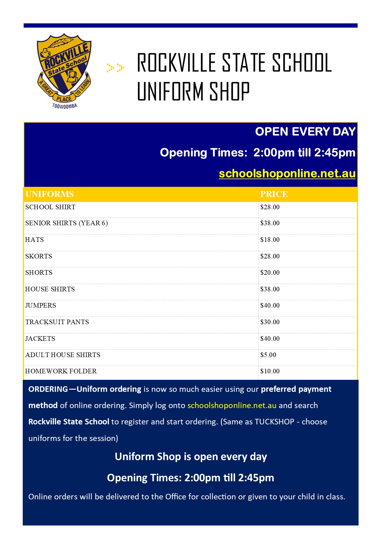 Please select this link to view our current uniform policy.